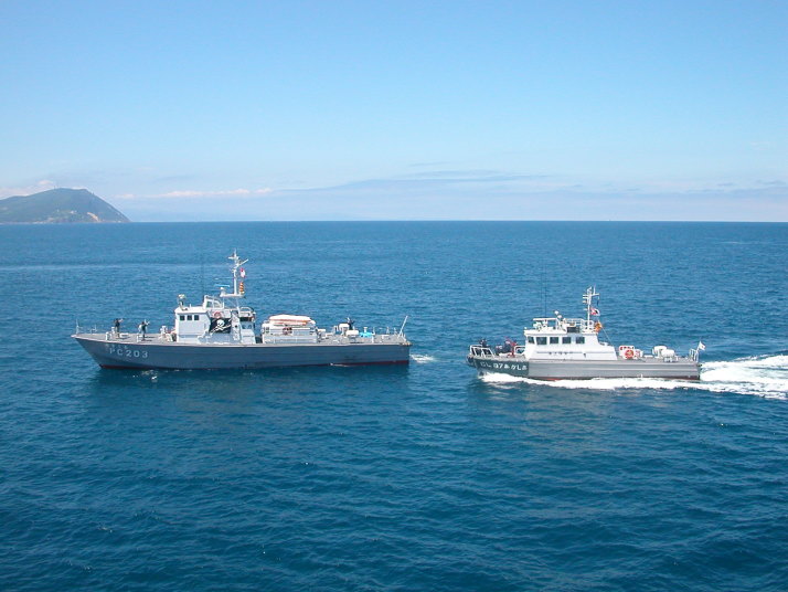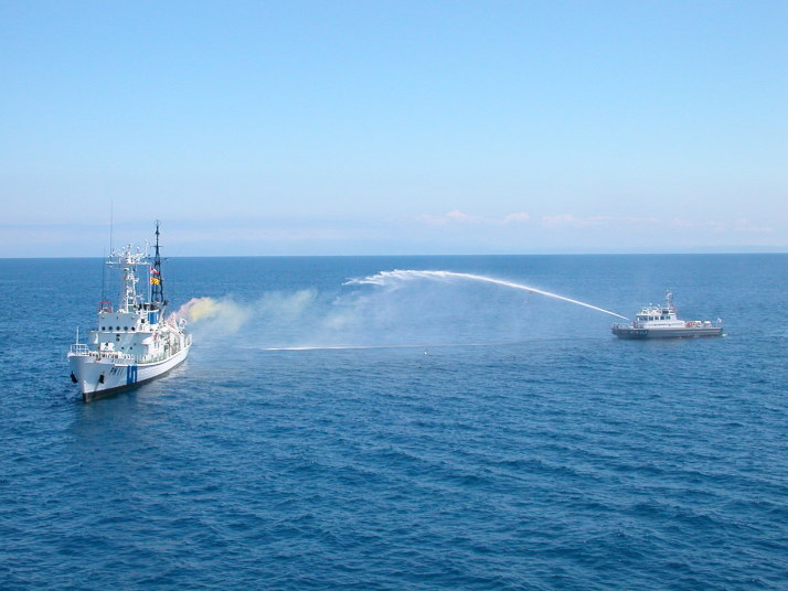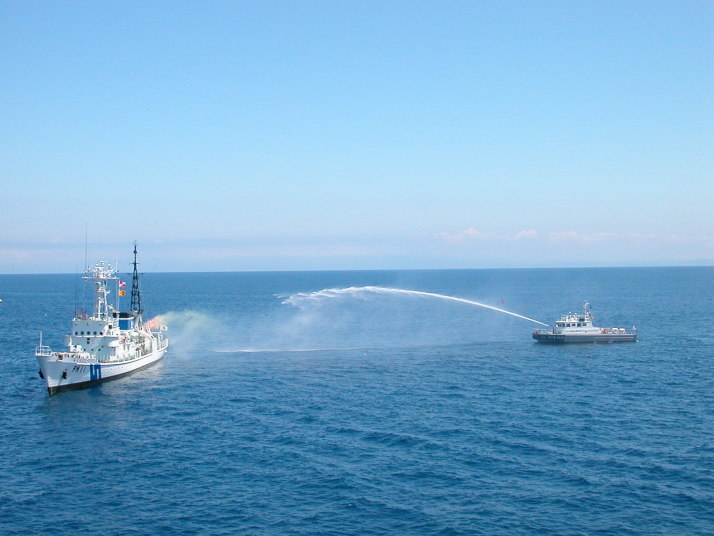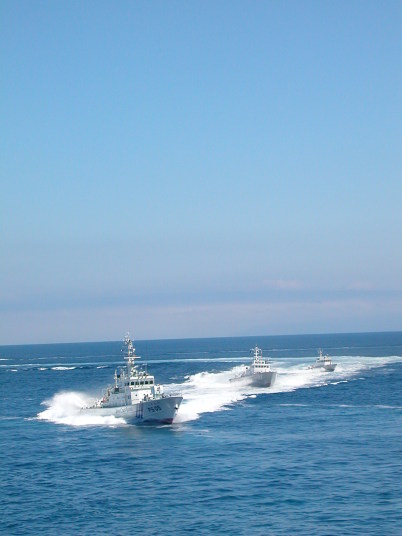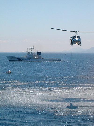 海の青さに感激です。ハワイ沖ではありません。石狩湾小樽沖です。錬度も高かったと思います。 北海道の船シリーズで海上保安庁の船をご紹介していなかった罪滅ぼしです。たっぷりご堪能ください。 17年7月23日、天気晴朗で、静穏な海面でした。一管区幹部職員の皆様に敬礼です。